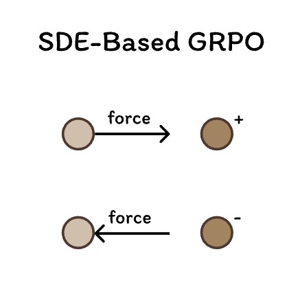 By reinterpreting SDE-based GRPO from a distance optimization perspective, we generate diverse trajectories via perturbed initial noise